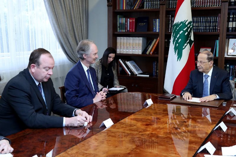 President of the Republic, General Michel Aoun, on Wednesday welcomed at Baabda Presidential Palace UN Secretary-General’s special envoy to Syria, Geir Pedersen, who visited him with an accompanying delegation.