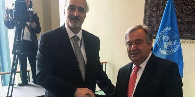Syria’s Permanent Representative to the UN Bashar al-Jaafari met UN Secretary General Antonio Guterres in New York and informed him on the Syrian Arab Republic’s stance on statements made by US President Donald Trump through which he expressed his intention to recognize so-called Israeli sovereignty over the occupied Syrian Arab Golan.