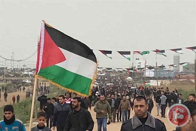 Thousands of Palestinians arrived at the eastern borders two hours earlier than the scheduled time for protests, waving Palestinian flags and chanting slogans.