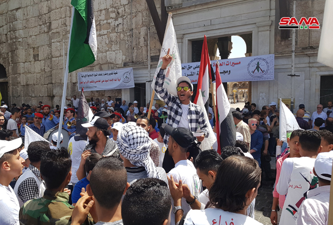 Under the title of “No to the deal of Century”, a massive rally was held Friday in Damascus to mark the International al-Quds (Jerusalem) Day.