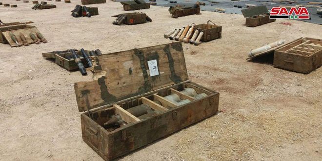 SANA pointed out that the discovered weapons include different sorts of ammunition, artillery and tanks rounds, anti-armor missiles, binoculars, landmines, US-made TAO rocket launchers and medium-sized machineguns.