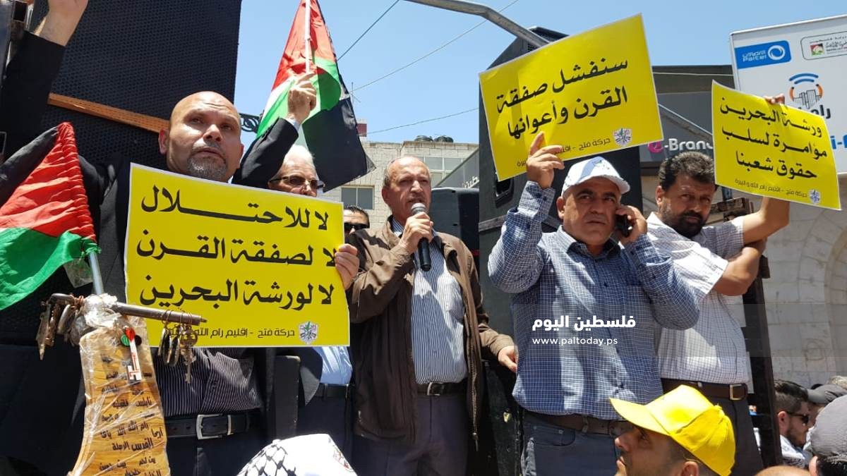 A large number of Palestinian took off to streets in the various cities of the West Bank in protest of the economic conference held by the US administration in Bahrain on Tuesday.