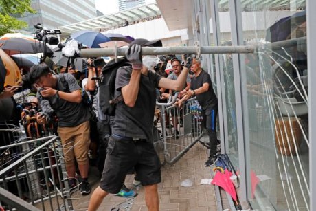 Anti-government protesters stormed Hong Kong’s parliament building late Monday after successfully smashing their way through reinforced glass windows and prising open metal shutters that were blocking their way.