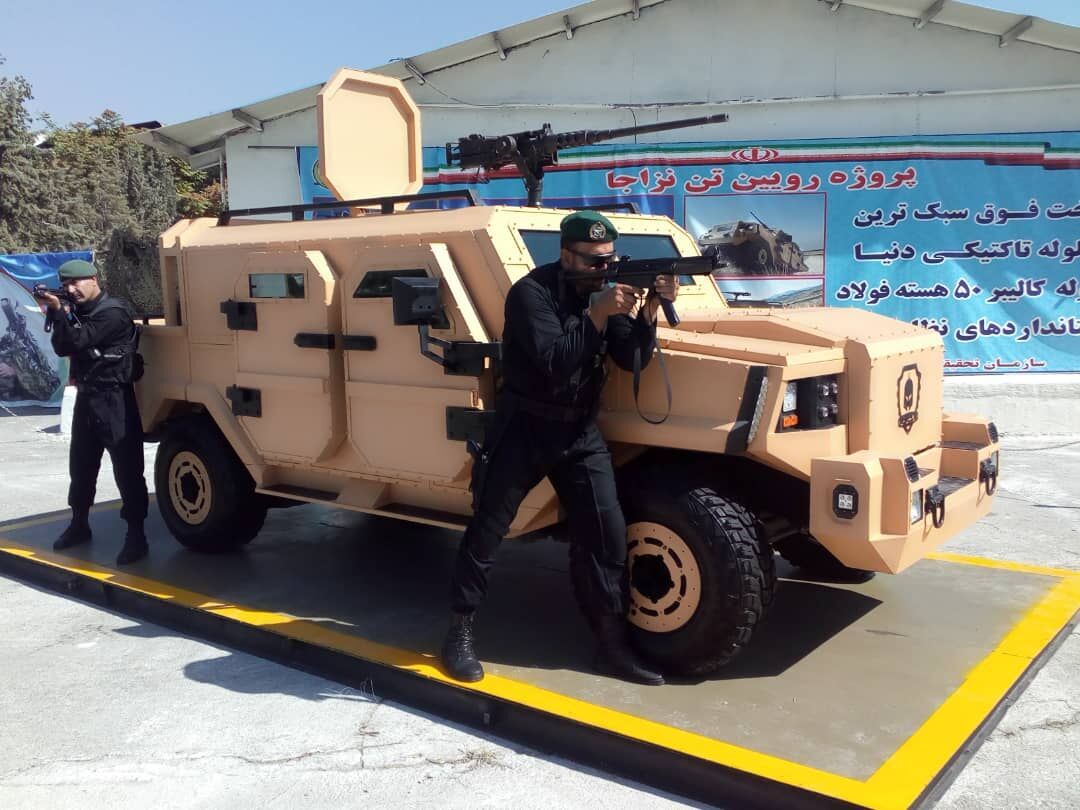 Ruintan is a state-of-the-art light vehicle resistant to steel core bullets. It has the defense standards of Iran, is surprisingly agile and powerful, and fully protects the passengers. The car can be used in terror fights or battlefields.