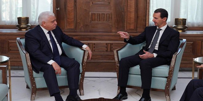 President Assad welcomed Iraq’s national security advisor Faleh Al-Fayyad, discussing with him the mutual cooperation between the two countries, mainly in the economic and counter-terror fields.