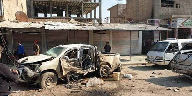 SANA reported that a booby-trapped motorcycle, parked near al-Mashhameh roundabout in al-Salihyia neighborhood in the city went off , causing the injury of four civilians as the injured were rushed to the hospital to receive the required treatment.