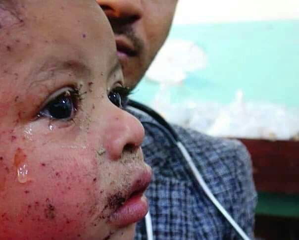 The infant Halima Amer Mahdi, 9 months, was rescued from the debris of her house which was destroyed by a Saudi air raid on Saada province.