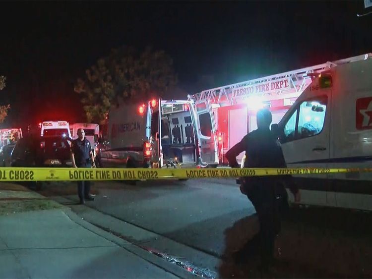 Police were called to the scene after at least one person opened fire into a crowd of about 35 people gathered outside the house in Fresno, around 200 miles (320 kilometers) north of Los Angeles.