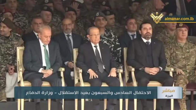 In addition to President Aoun, the celebration was attended by Speaker Nabih Berri and Caretaker Premier Saad Hariri, as well as Army Commander General Joseph Aoun and other political and military officials.