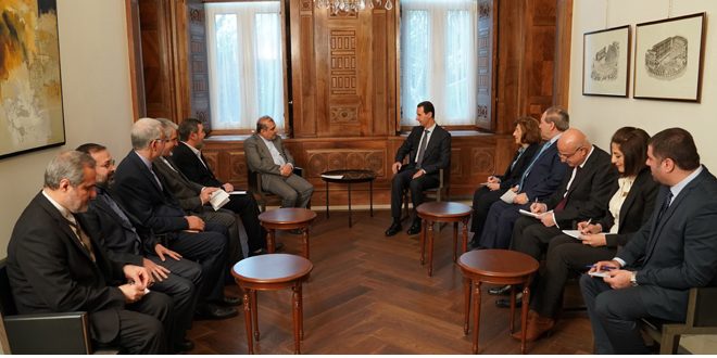 The Iranian delegation also discussed the most important points tackled during the recent meeting in Geneva between Iran, Russia, and Turkey, with the delegation members lauding the progress made by the Syrian Arab Army in the Syrian al-Jazira area and congratulating President al-Assad and the Syrian people over the victories being achieved currently by the military operation in Idleb.