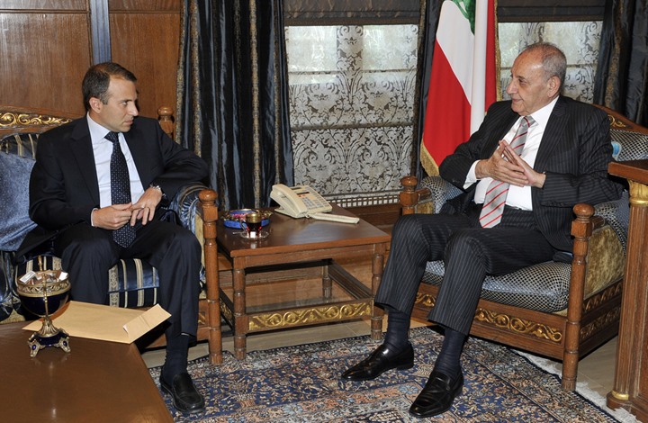 House Speaker Nabih Berri received on Tuesday at his residence in Ain Al-Tineh, Beirut, the caretaker foreign minister Gebran Bassil, discussing with him the cabinet formation process.