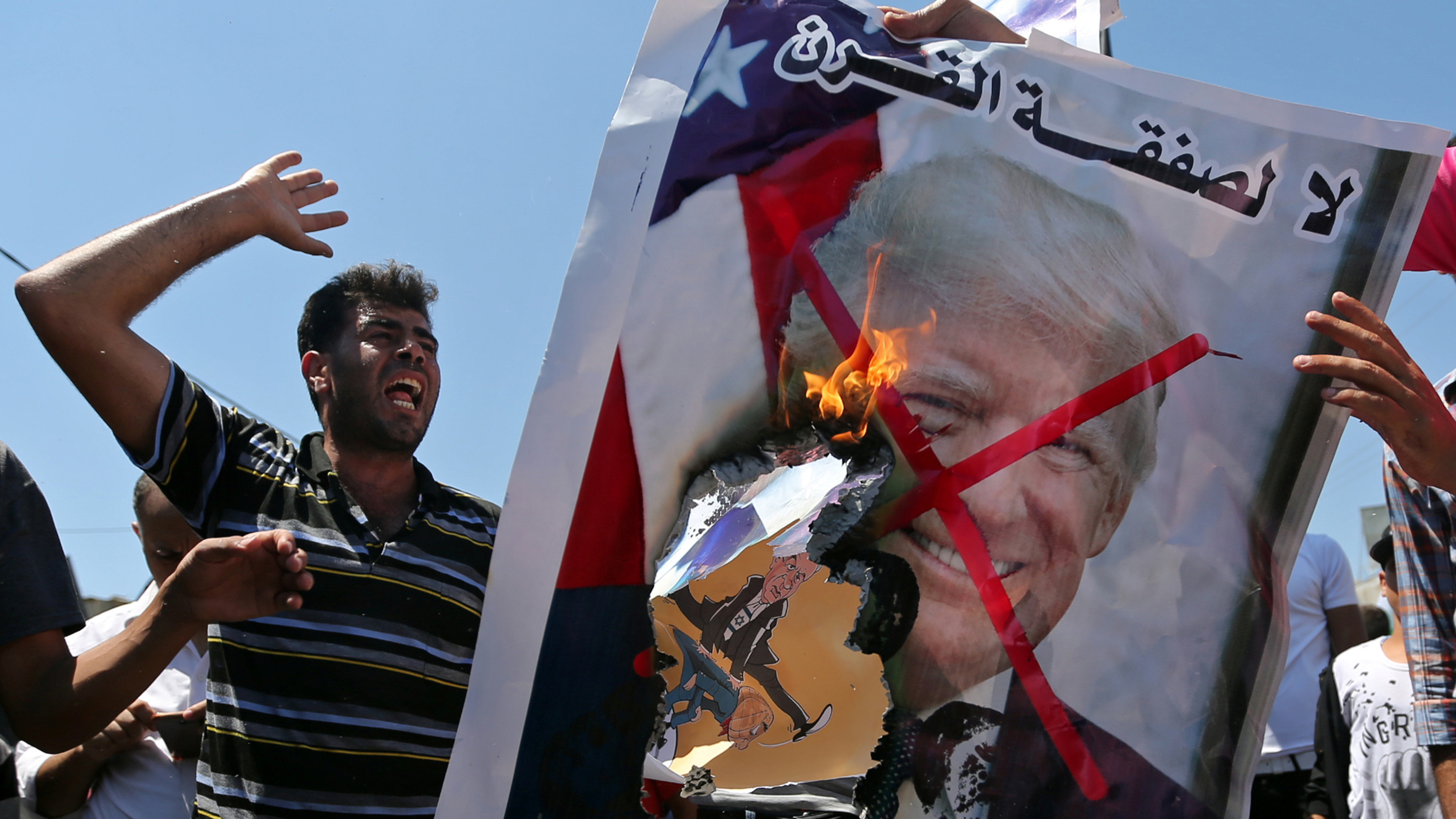 Thousands demonstrated in Gaza, burning pictures of Trump and the American flag, while further rallies were planned for tonight and the coming days.