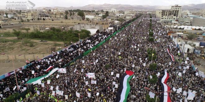 The rally’s concluding statement reiterated our support to the Palestinian people to liberate the land and sanctities, vowing confronting all schemes aimed at diverting the Yemenis away from the Palestinian cause.