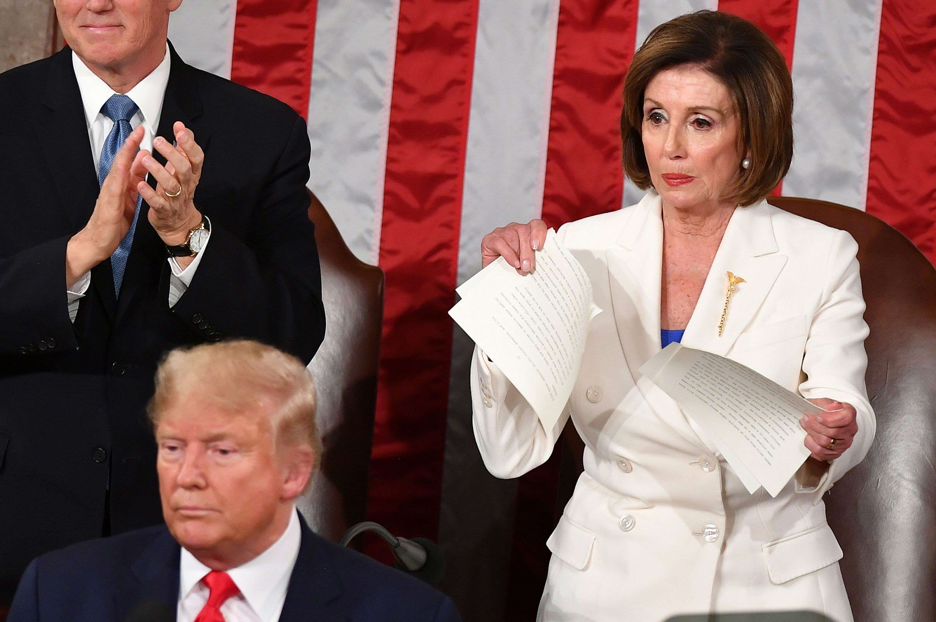 Top US Democrat Nancy Pelosi ripped up her copy of Donald Trump’s State of the Union address on Tuesday, in a pointed political gesture after listening tight-lipped to the president tout his achievements in office.