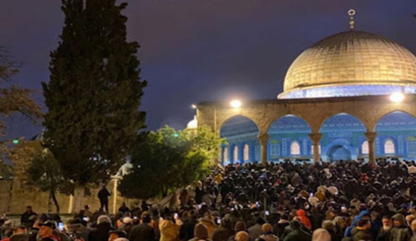 Palestinians’ prayers at Al-Aqsa were in response to a call by Islamic Jihad and Hamas Palestinian resistance movements to perform Al-Fajr Prayer in a move aimed at voicing solidarity with the holy mosque in face of the Israeli repressive measures.