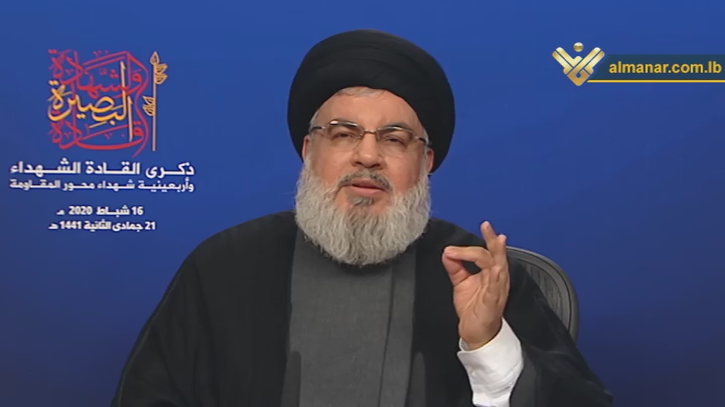 Hezbollah Secretary General Sayyed Hasan Nasrallah stressed Sunday that the United States of America has recently committed two major crimes, the assassination of the head of IRGC’s Al-Quds Force general Qasem Suleimani as well as the deputy chief of Iraq’s Hashd Shaabi Abu Mahdi Al-Muhandis and the announcement of Trump’s Mideast plan.