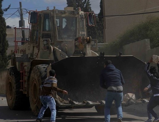 An Israeli military bulldozer pushed big rocks into the protester, injuring a journalist and a kid.