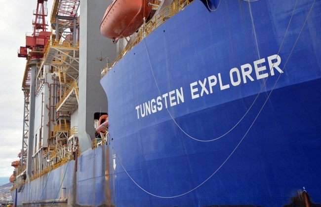 TUNGSTEN EXPLORER drill ship which will conduct the first exploratory drilling for oil and gas docked in the Lebanese territorial waters on Tuesday.