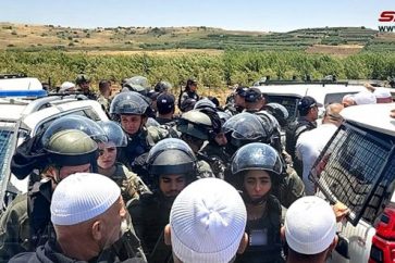 The Israeli occupation forces brought in reinforcements to besiege the agricultural areas as wind turbines are expected to be built in the occupied Syrian Golan. SANA reported that hundreds of residents of the occupied Syrian Golan headed for al-Hafayer area, east of the village of Masada, and the occupation forces ...