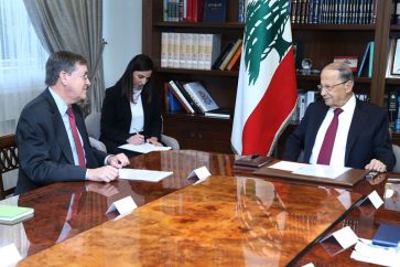 The Lebanese President Michel Aoun received on Wednesday US Assistant Secretary of State for Near Eastern Affairs, David Satterfield, discussing with him the latest developments. House Speaker Nabih Berri also met with Satterfield, as talks between them reportedly focused on the demarcation of sea and land borders in an atmosphere ...